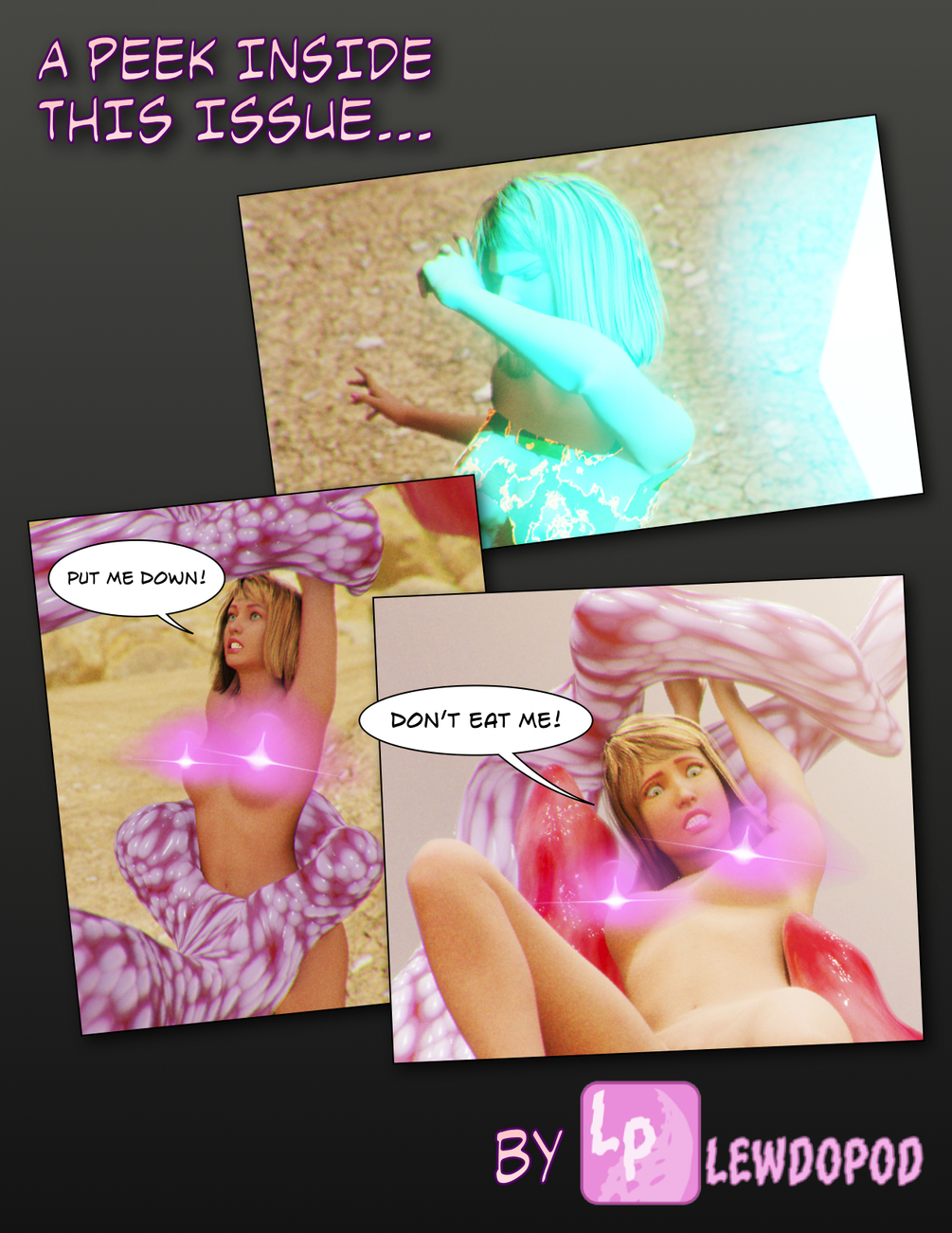 Features: tentacle sex, semi-willing soft vore & female nudity